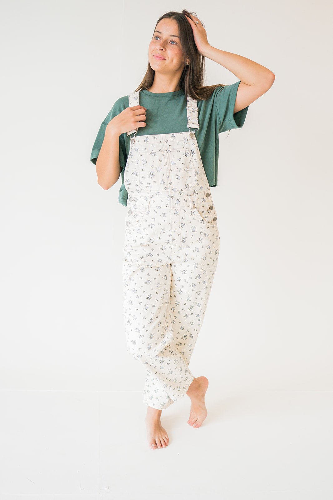 Step into effortless style with these charming floral ecru denim overalls! Featuring a classic 5-pocket design for practical storage and adjustable straps that customize the fit to your frame, these overalls blend comfort with vintage-inspired appeal. The delicate floral pattern adds a whimsical touch to your everyday wardrobe, perfect for casual outings, creative projects, or making a fashion statement. Durable denim construction ensures they'll be a go-to favorite for seasons to come.