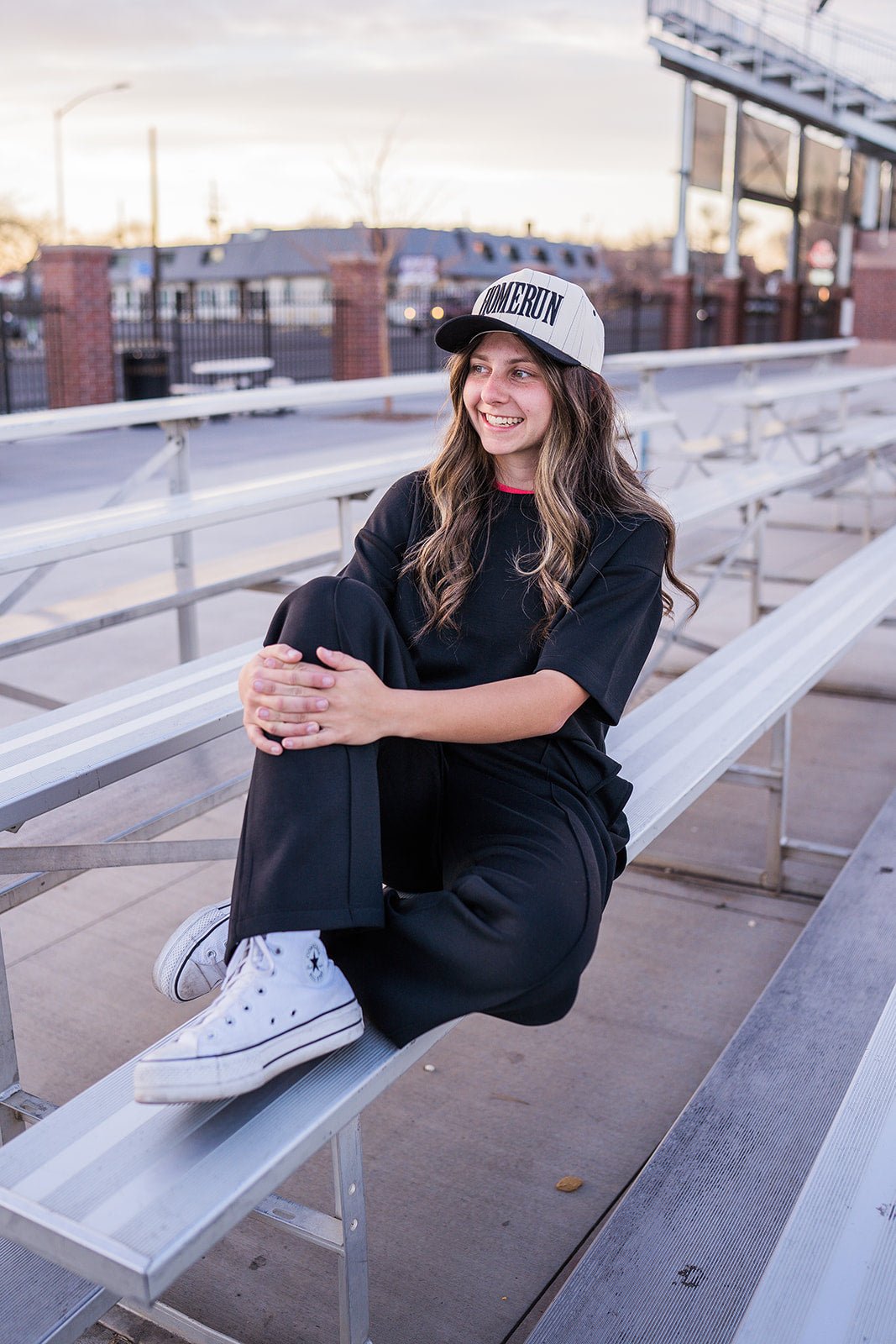 -Has matching zip up sweatshirt, skort & wide leg pants